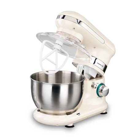 همزن برقی غیر دستی (کاسه دار یا پایه دار): این همزن ها در ابعاد بزرگی طراحی شده اند و دارای کاسه های نسبتا حجیمی برای فرآیند هم زدن هستند و از وزن بالایی برخوردارند. اغلب این دستگاه ها دارای سری های مختلف از جنس استیل هستند و بدلیل اینکه از قدرت و توان مصرفی بالایی برخوردارند، نسبت به نوع بدون کاسه فرآیند هم زدن را سریع تر و راحت تر انجام می دهد و چون کارایی بیشتری دارند دارای قیمت بالایی هستند.