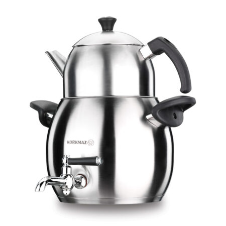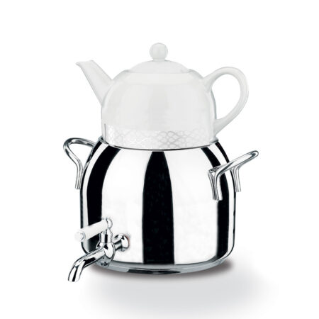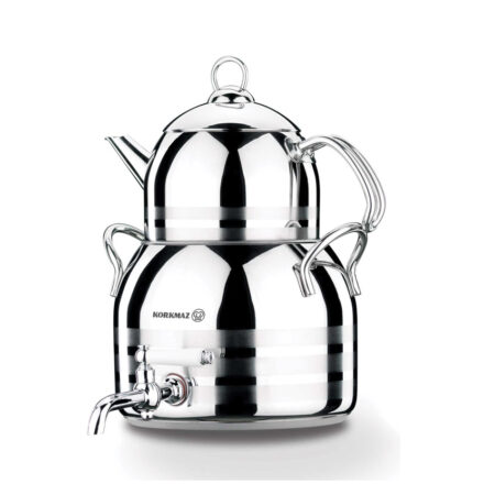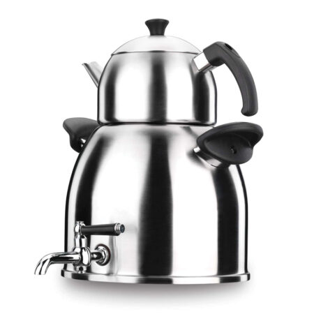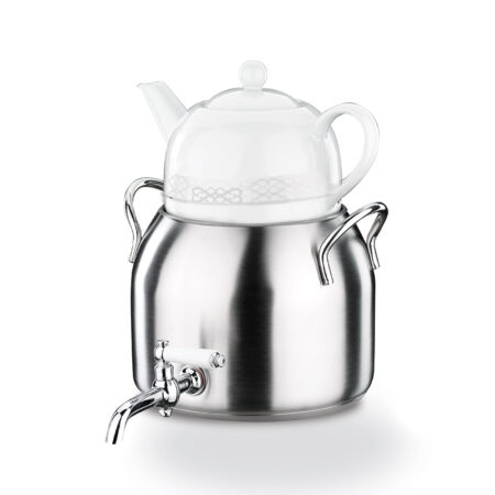 سماور رو اجاقی شیر دار 1.0 + 3.0 لیتر استیل مات استا پلاتینیوم کرکماز 043