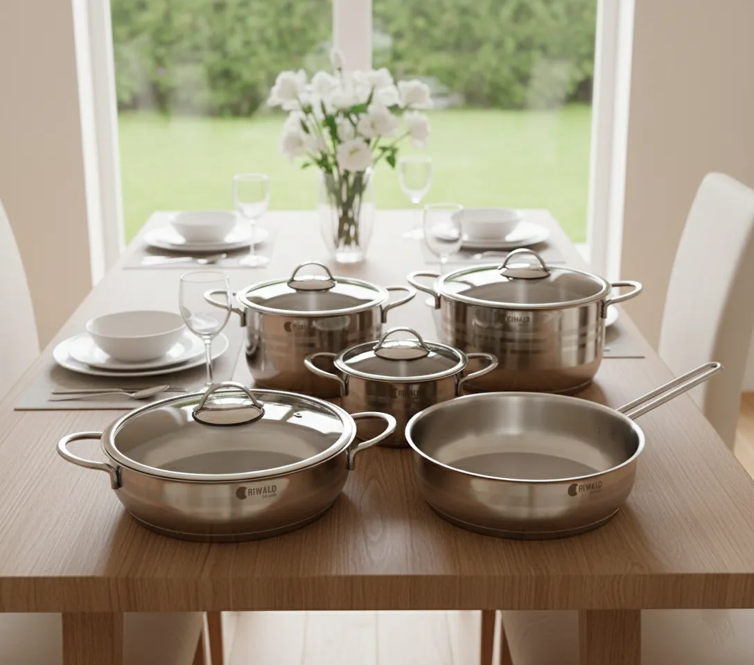 سرویس قابلمه استیل ۹ پارچه لیورپول ریوالد 6801209-1022 بهترین انتخاب برای کسانی است که به دنبال یک سرویس پخت و پز ۹ پارچه با ترکیب بی‌نظیری از دوام، زیبایی و عملکرد حرفه‌ای در آشپزخانه خود هستند. این مجموعه کامل از برند معتبر ریوالد، با طراحی استیل براق و چشم‌نواز، نه تنها جلوه‌ای خاص به آشپزی شما می‌بخشد، بلکه تضمین می‌کند که سالها با بالاترین کیفیت برای شما کار خواهد کرد. این سرویس ۹ پارچه شامل قابلمه‌ها و تابه‌ای در سایزهای کاربردی است و یک سرمایه‌گذاری ضروری و ماندگار محسوب می‌شود.