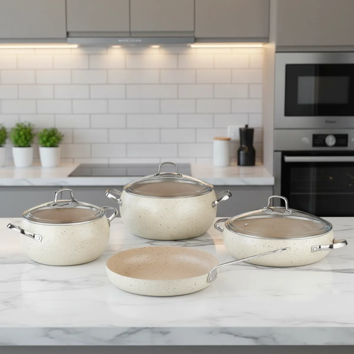 Korkmaz Mondea 7 Pcs Cream Granite Non-stick Cookware Set A2656