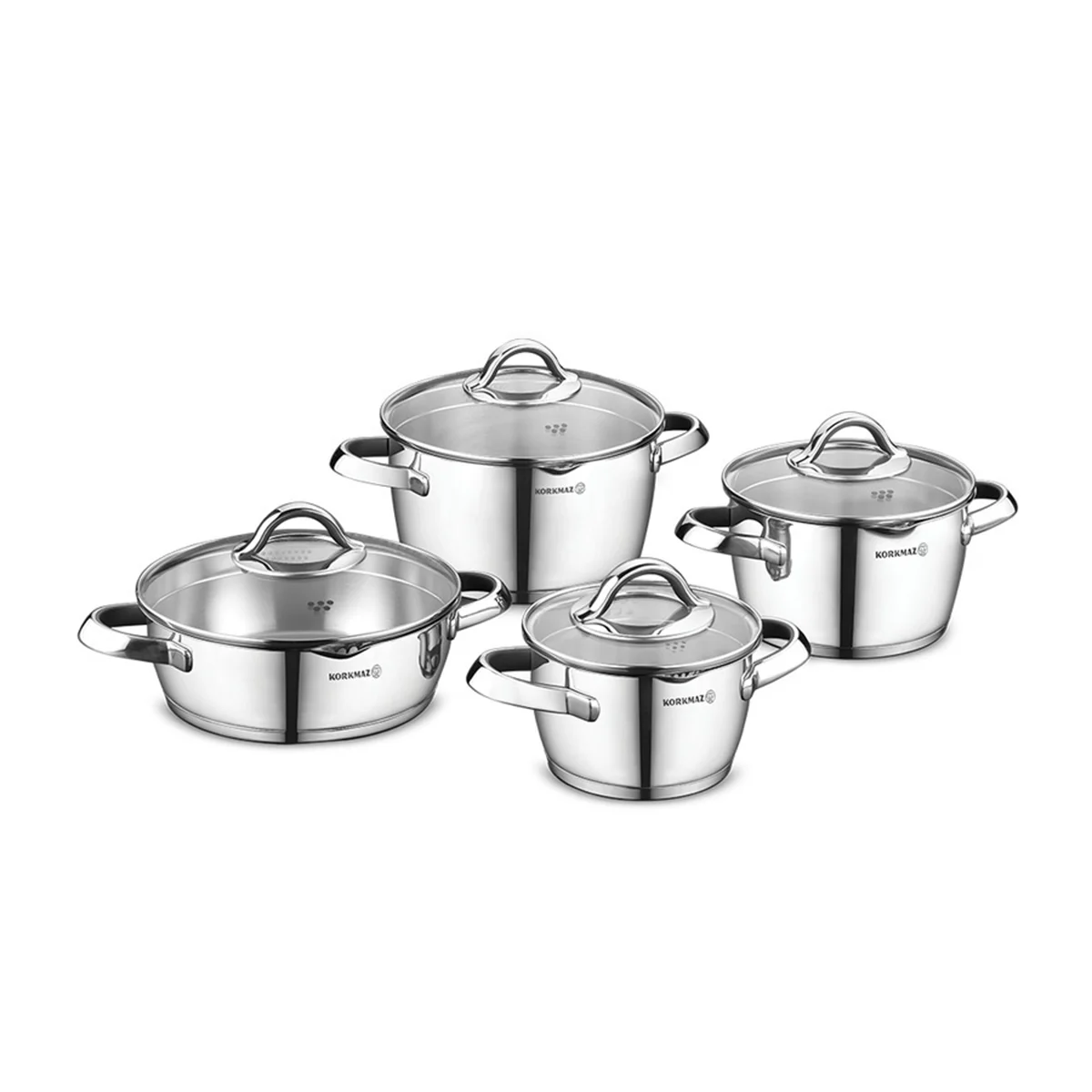 Korkmaz Vertex 8 Pcs Glossy Inox Cookware Set A1973 |