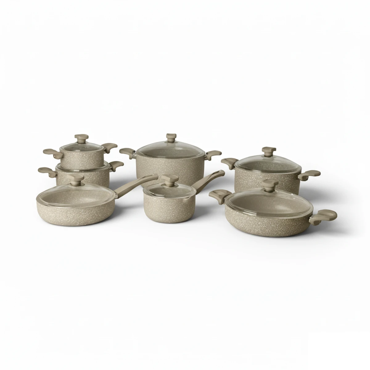 Riwald York 14 Pcs Beige Granite Cookware Set 6501114-0106