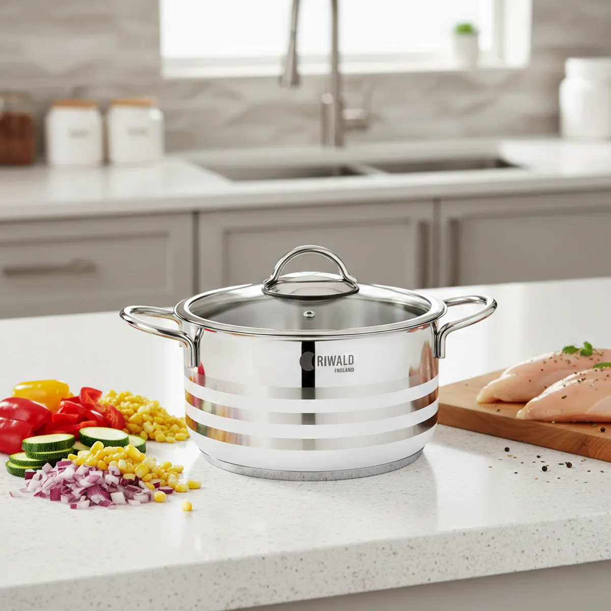 قابلمه استیل لیورپول ریوالد 6803220-1022 با بهرهگیری از مرغوبترین آلیاژ استیل ضدزنگ 18/10 (ترکیب ایدهآل کروم و نیکل)، استاندارد جدیدی از دوام و سلامت را در آشپزخانه شما تعریف میکند. کفه ۳ لایه حرفهای این محصول با تکنولوژی پیشرفته تولید شده است تا با توزیع کاملاً یکنواخت و سریع حرارت در تمام سطح قابلمه، از ایجاد نقاط داغ و سوختن موضعی غذا جلوگیری کرده و فرآیند پختوپز را بهینهتر و سریعتر از همیشه پیش ببرد.