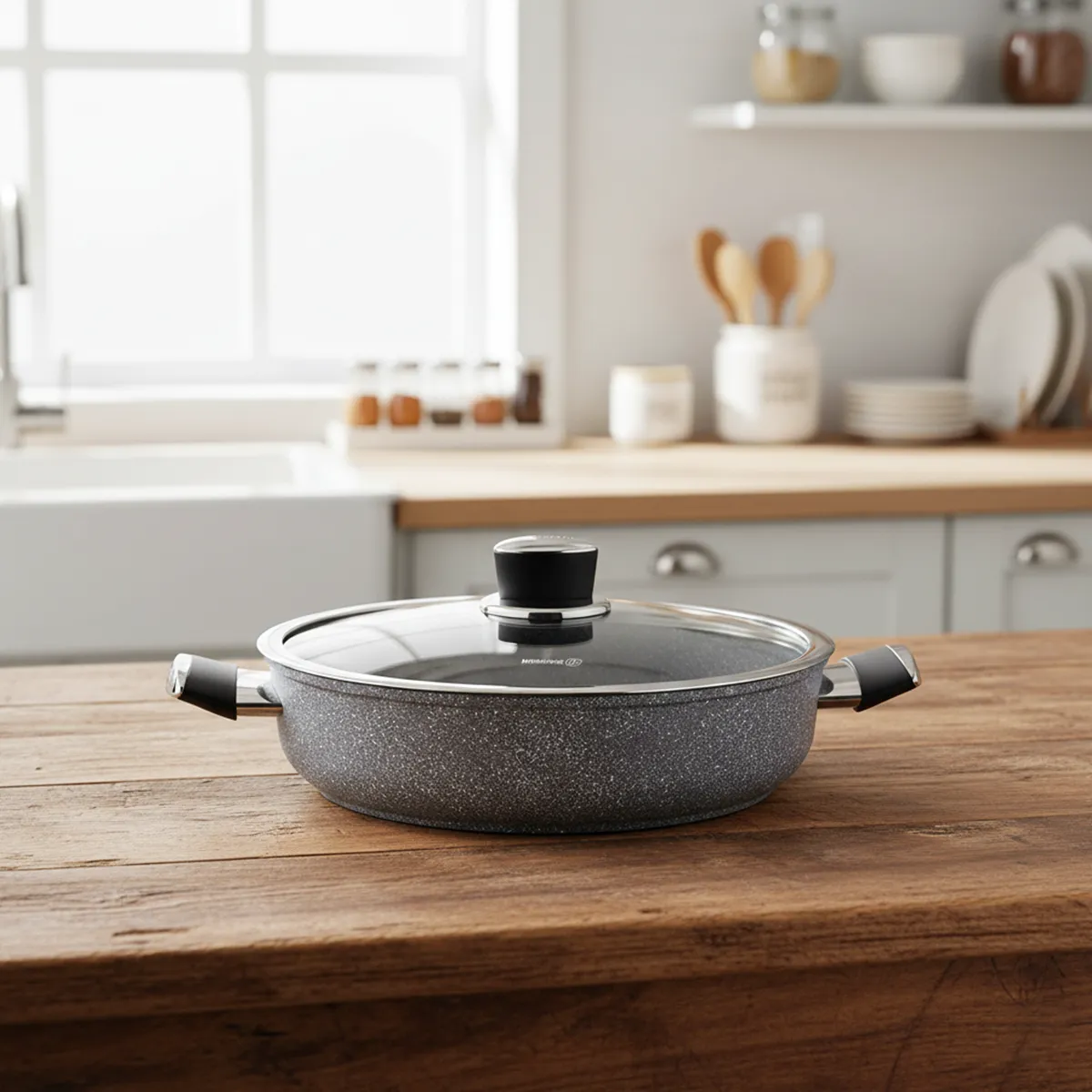 قابلمه کوتاه نچسب 26*7 سانتی متر 3.5 لیتر طوسی پالما کرکماز 3906