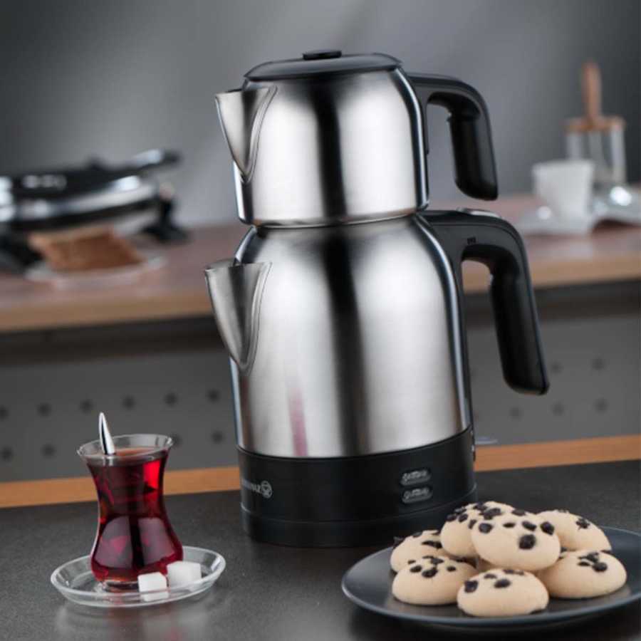 چای ساز اتوماتیک برقی 1600 وات 0.9 + 1.8 لیتر استیل براق دمکولیک کرکماز 359