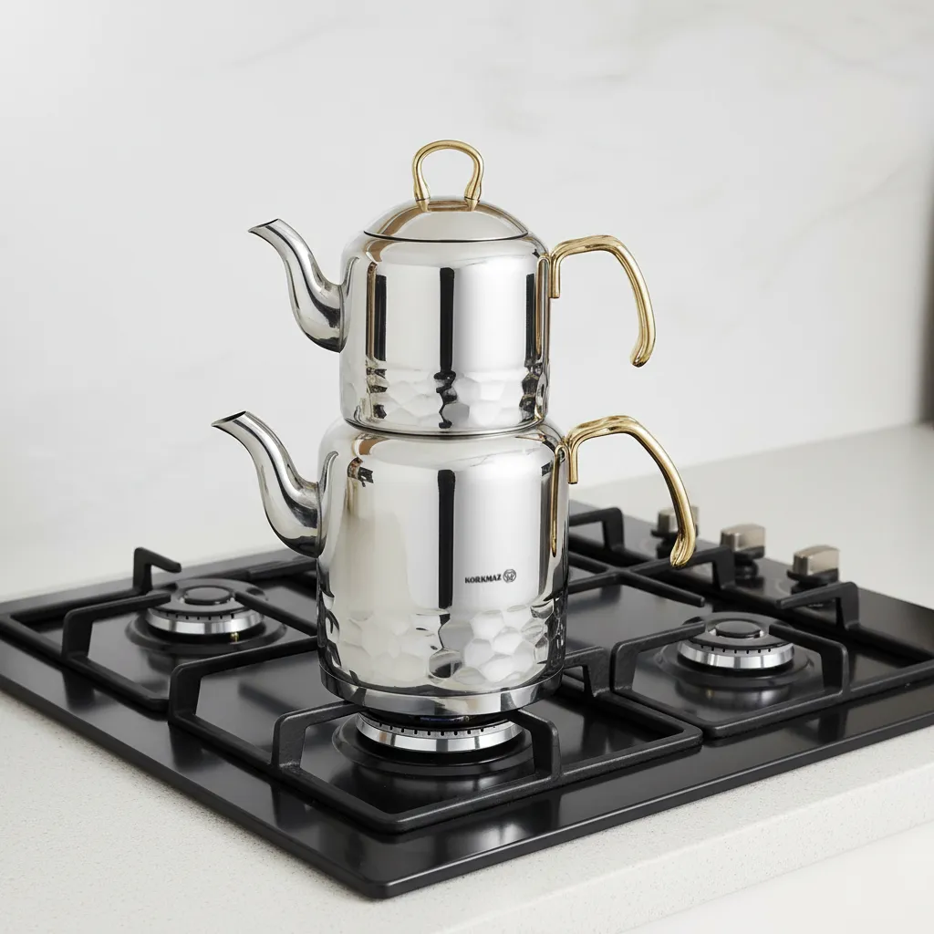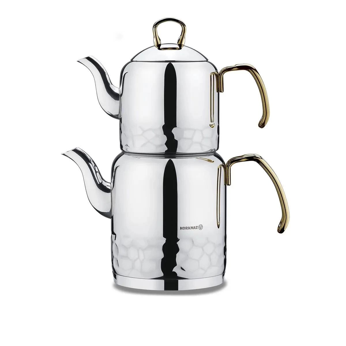 کتری و قوری 1.1 + 2.2 لیتر استیل براق ارنا کرکماز 227-02