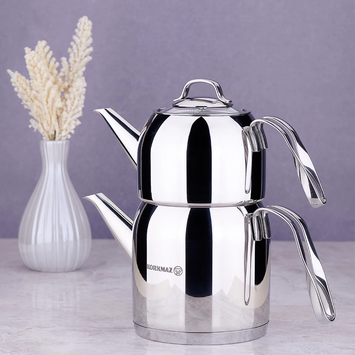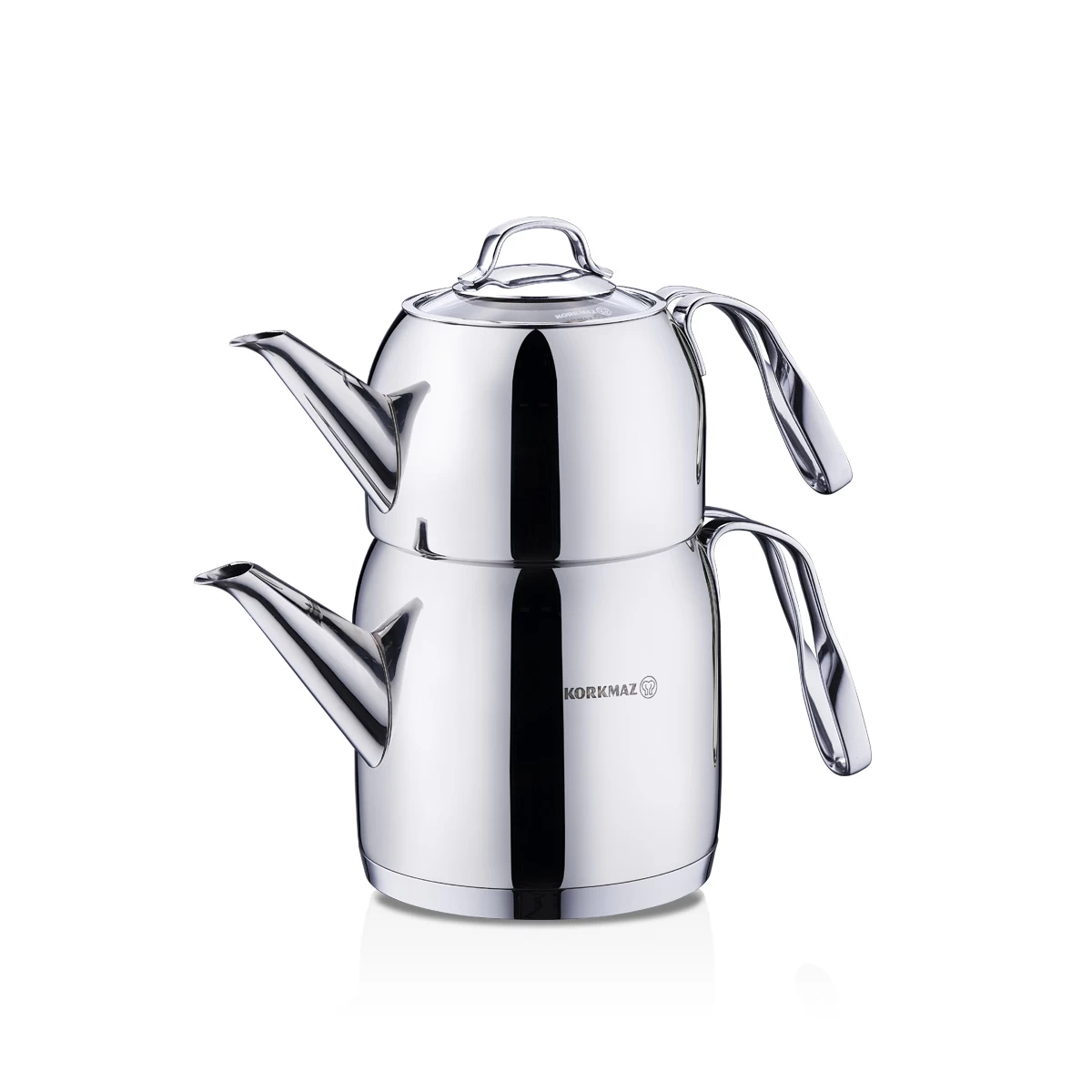 کتری و قوری 0.9 + 1.6 لیتر استیل براق استیما کرکماز 191