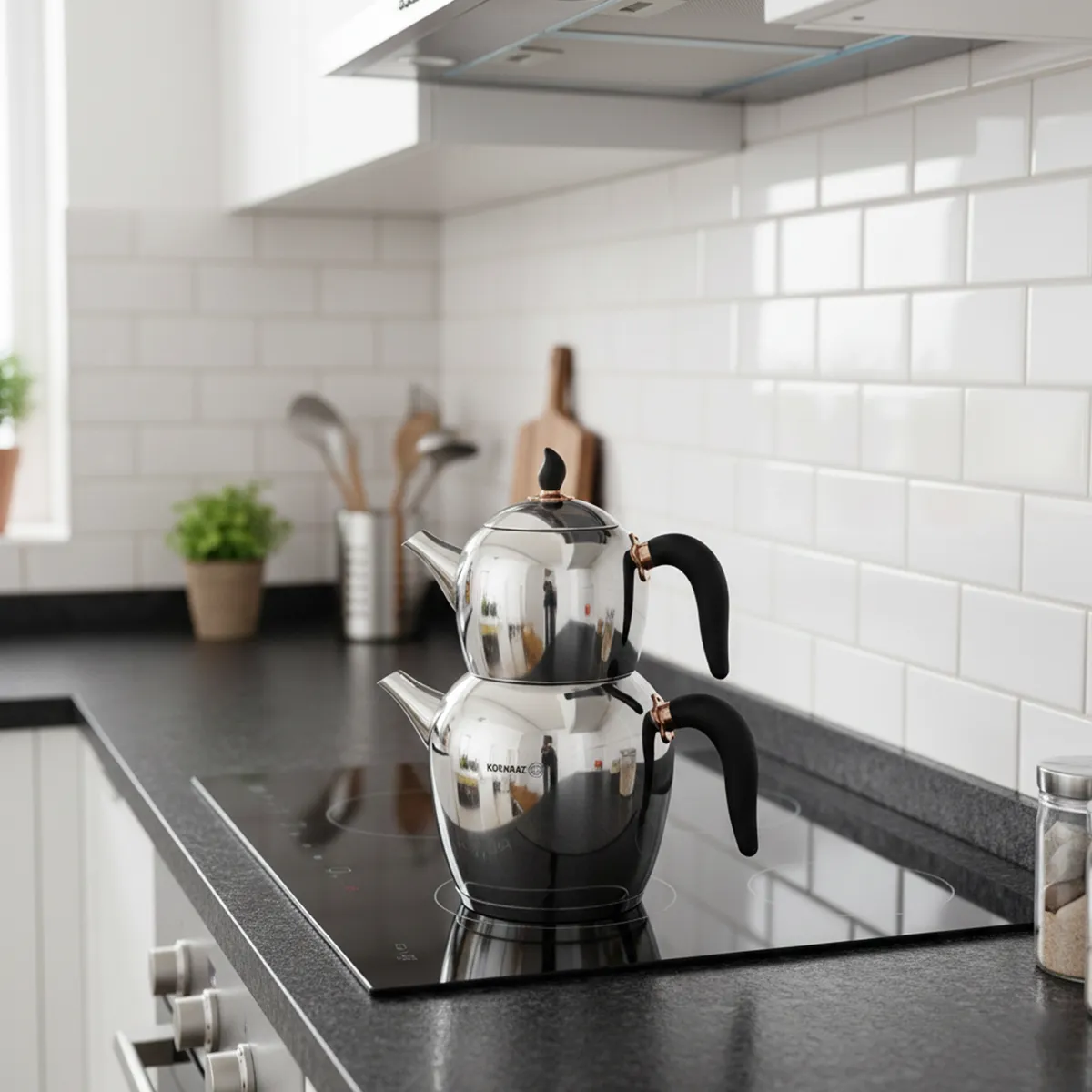 کتری و قوری 1.1 + 2.3 لیتر استیل براق شهناز کرکماز 214