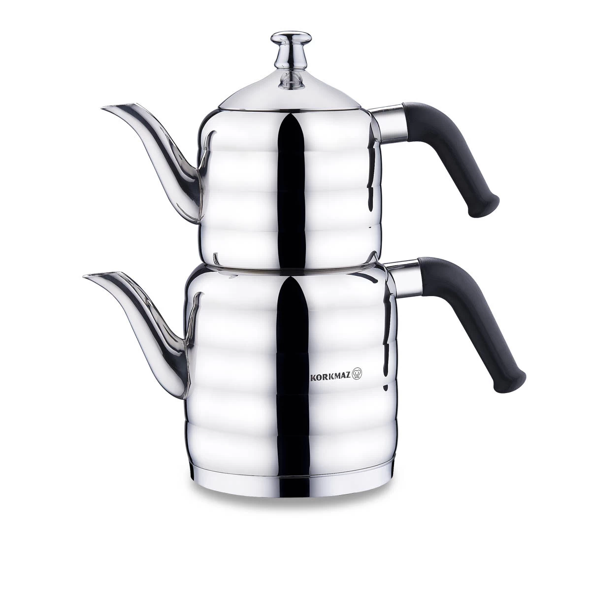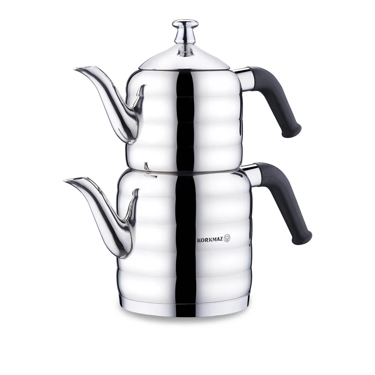 کتری و قوری 1.1 + 2.0 لیتر استیل براق مینا ماکسی کرکماز 036