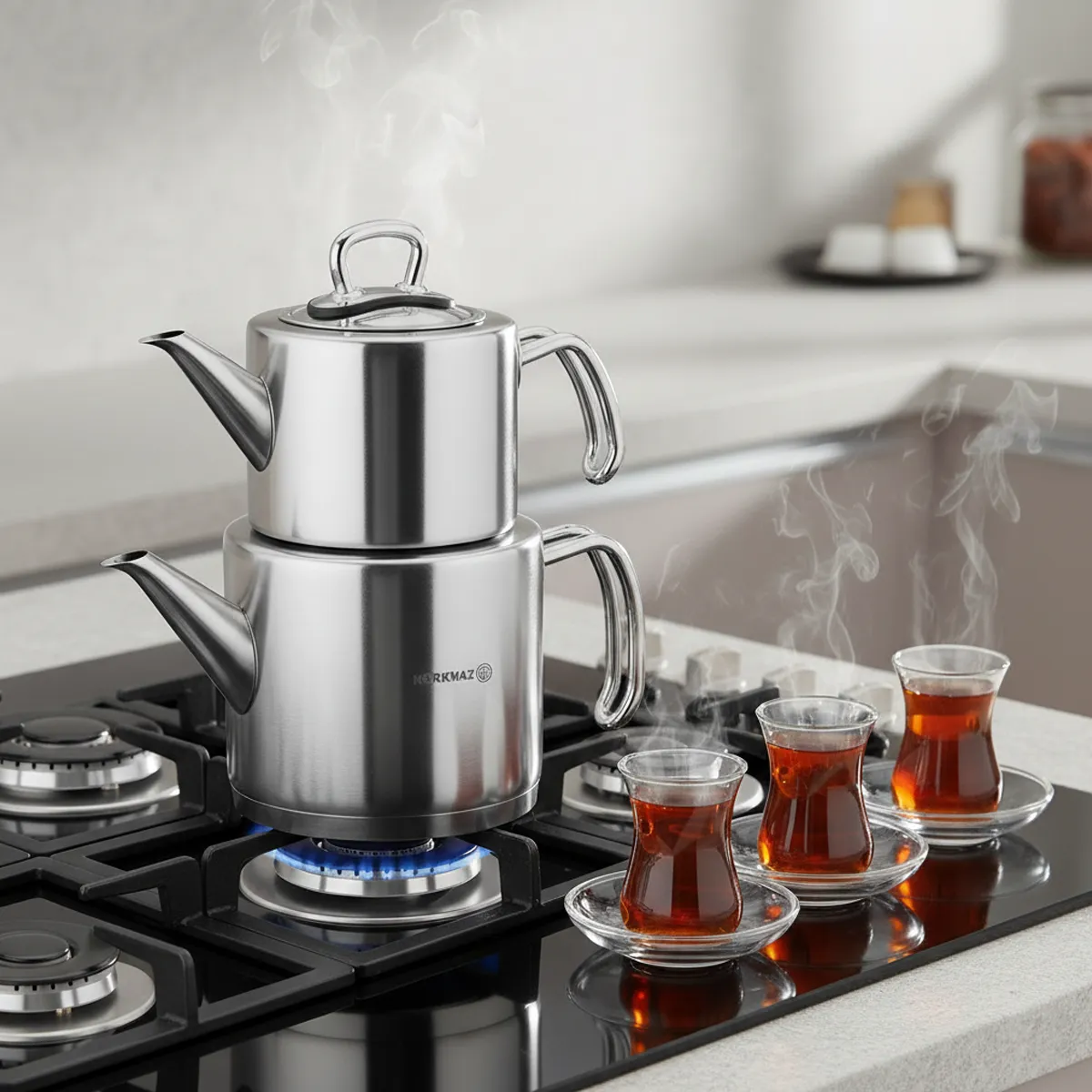 کتری و قوری 1.2 + 1.8 لیتر استیل براق پرولاین کرکماز 274