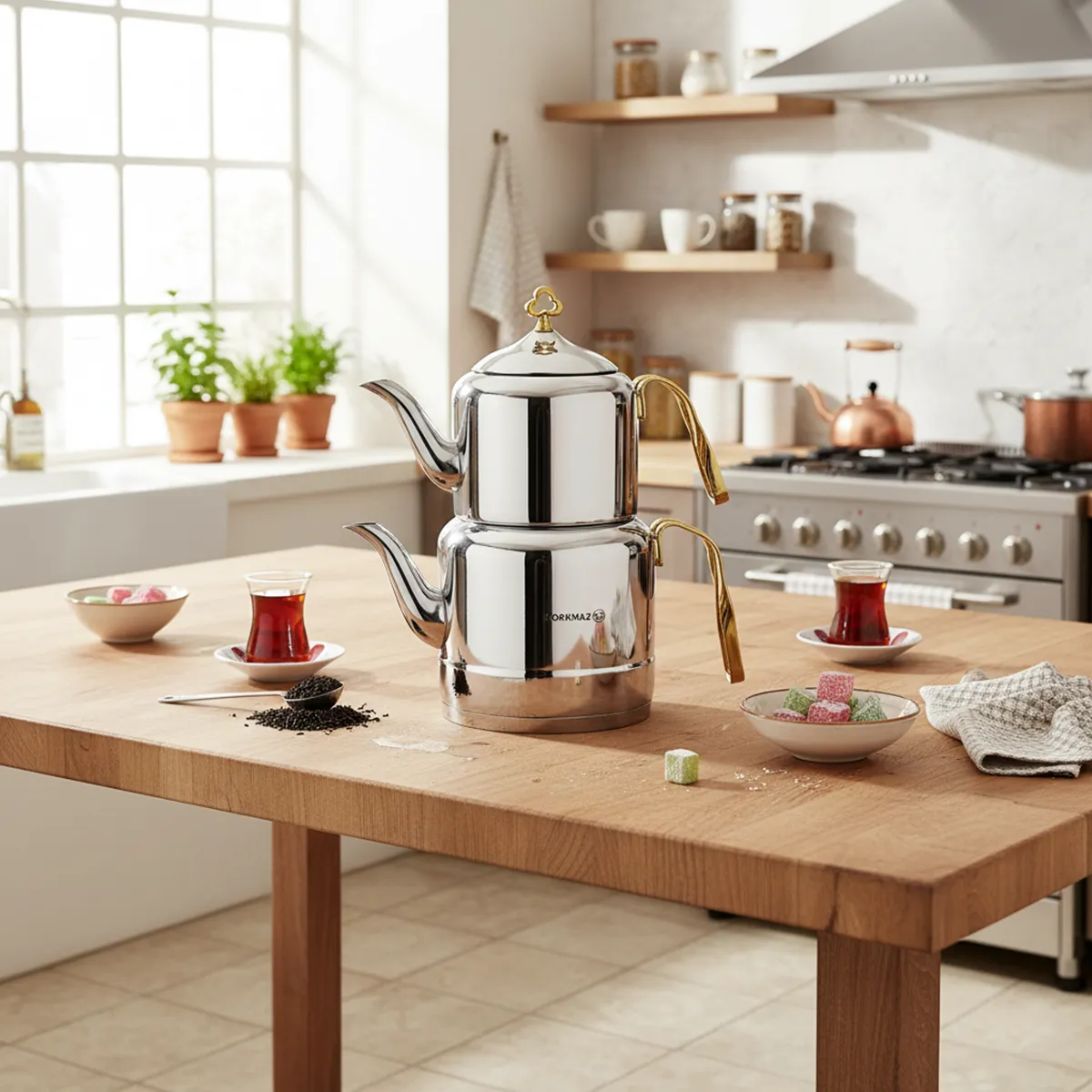 کتری و قوری 1.1 + 2.0 لیتر استیل براق چینتمانی کرکماز 212